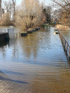 Gerade in solchen Augenblicken wird die besondere Lage der Groov deutlich – ein Ort, an dem Natur und Wasser in perfekter Harmonie zusammentreffen. Hochwasser ist hier nicht nur ein Ereignis, sondern auch Ausdruck der lebendigen Verbindung zum Rhein.